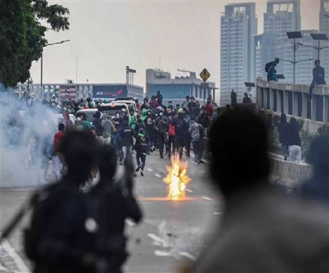Hundreds of protesters gathered outside Parliament following the police action were seen running away from the Parliament complex in the capital Jakarta. It is being told that the furious mob has also pelted stones in the Parliament premises in response to this.
